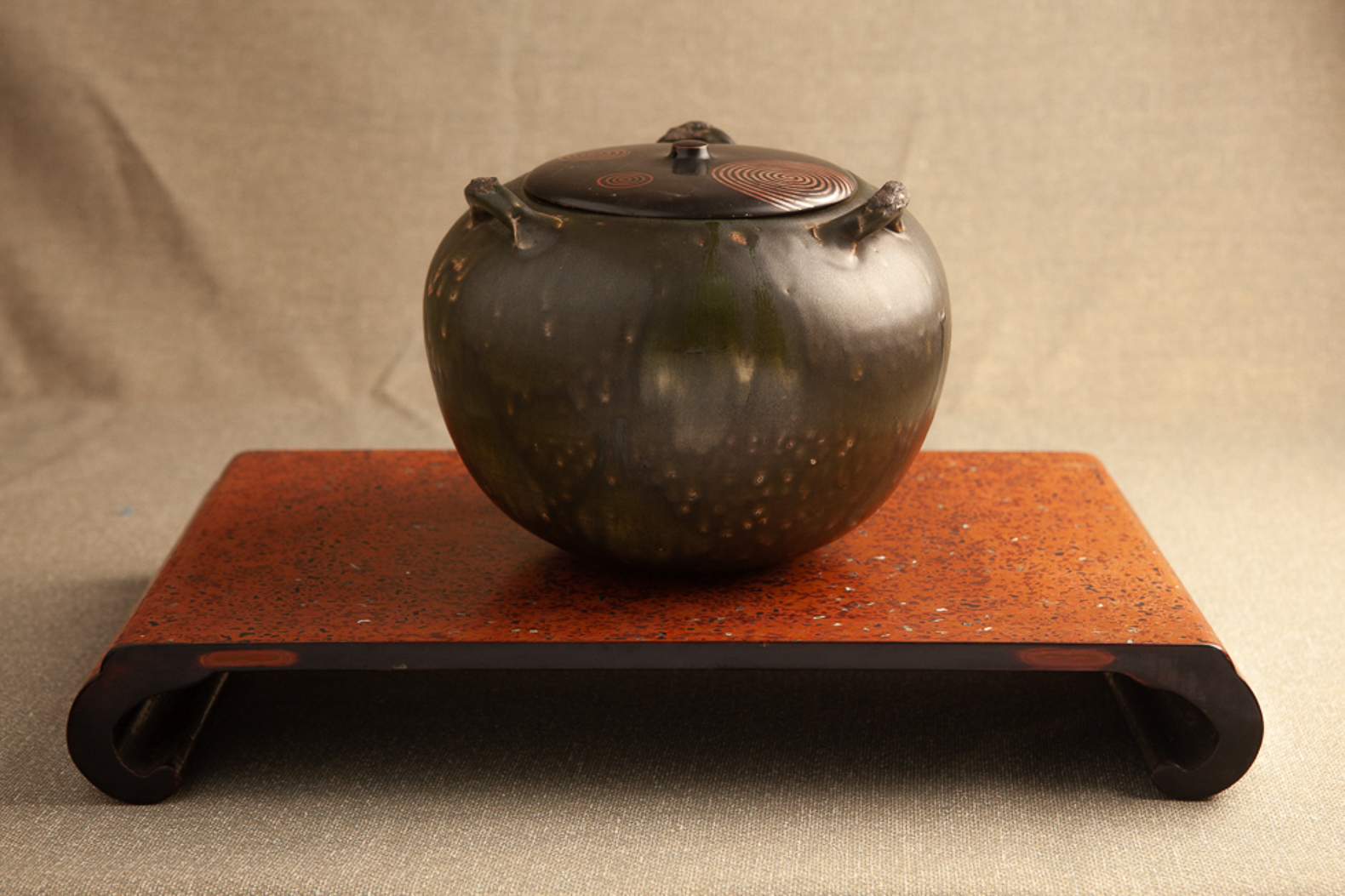緑釉三っ耳壺