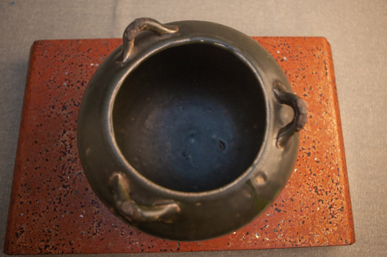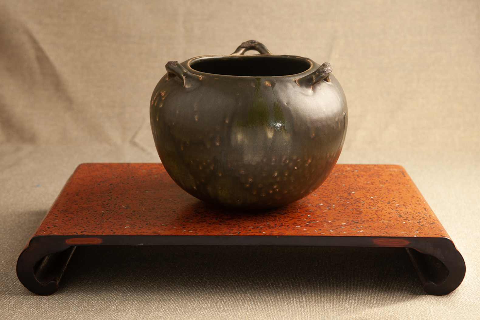 緑釉三っ耳壺